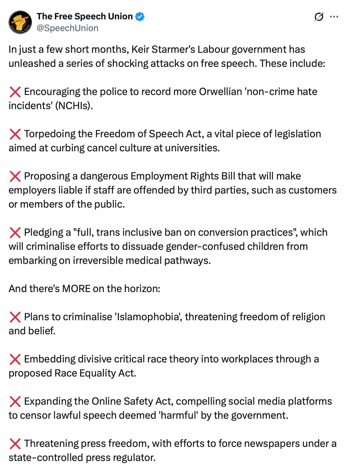 The erosion of free speech in Britain has been happening for years, turbo-charged by Keir Starmer’s Labour government. But it has been given global attention recently owing to the likes of Elon Musk highlighting cases of people locked up for tweets.