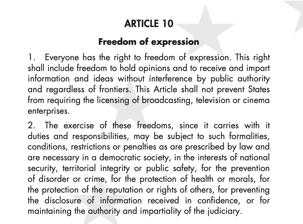 The only protection in Britain is Article 10 of the European Convention on Human Rights (ECHR). But Part 2 of the Act notes that a nation’s laws against speech are not protected by the article.